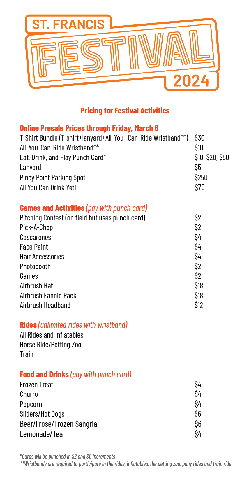 Child who will do absolutely everything: ~$80 in punch cards to get a few snacks, as well as hair dye, cascarones, an airbrushed item, play the Pitching Contest, and a few Pick-A-Chop pulls. Make sure you have purchased an All-You-Can-Ride Wristband (with the T-Shirt Bundle or optional alone) to ride all the rides and inflatables.